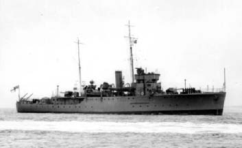 NIGER (J73) (sixth ship of the name) was one of the two triple-expansion engined 'Halcyons', being similar to SALAMANDER, in dimensions and machinery. She commissioned at Devonport on 4 June 1936. She took part in exercises in the Firth of Clyde in June 1937 then she sailed to the western Mediterranean for patrol duties in Spanish waters in July/August. She then docked and refitted at Devonport for the rest of the year. In Jan1938 NIGER reduced to 2/5 complement and was taken in hand for refit and re-arming (HA replaced the LA 4" guns). She spent June/July visiting south coast ports, and in August she sailed to Copenhagen. With the 1st Flotilla she spent Sept/October off the eastern Scottish coast. NIGER refitted at Devonport in April 1939 and she spent June visiting south coast ports after taking part in the search for the submarine THETIS (sunk in Liverpool Bay) early in the month. She was at her war station on the East Coast when the war started on 3 September 1939. On 7 Oct 1939 while minesweeping off the Swarte Bank, North Sea, the ship was slightly damaged when she was attacked by enemy flying boats. She was attacked again by enemy aircraft on 30 Jan 1940 off Invergordon; 20 bombs were dropped causing negligible damage to the ship but wounding three men.